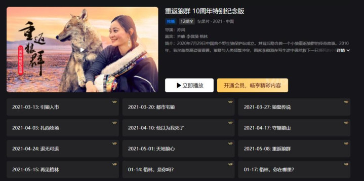 于是,2021年,优酷推出了《重返·狼群》的十周年纪念剧集,全长十集,补充了大量纪录片中被省略的素材。